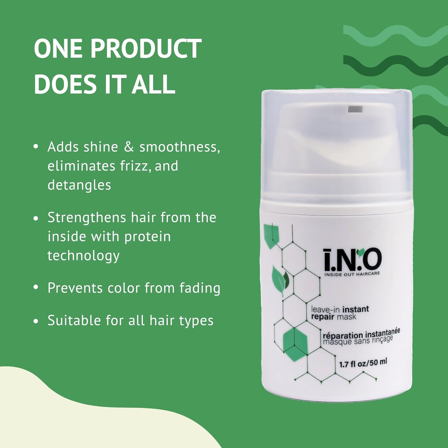 INO Leave In Instant hair repair mask is perfect for all hair types. Get smoother, stronger, and shiny hair.
