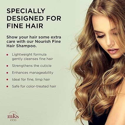 Apply to wet hair, lather, and rinse thoroughly. For best results, follow with MKS Eco Nourish Fine Hair Conditioner.